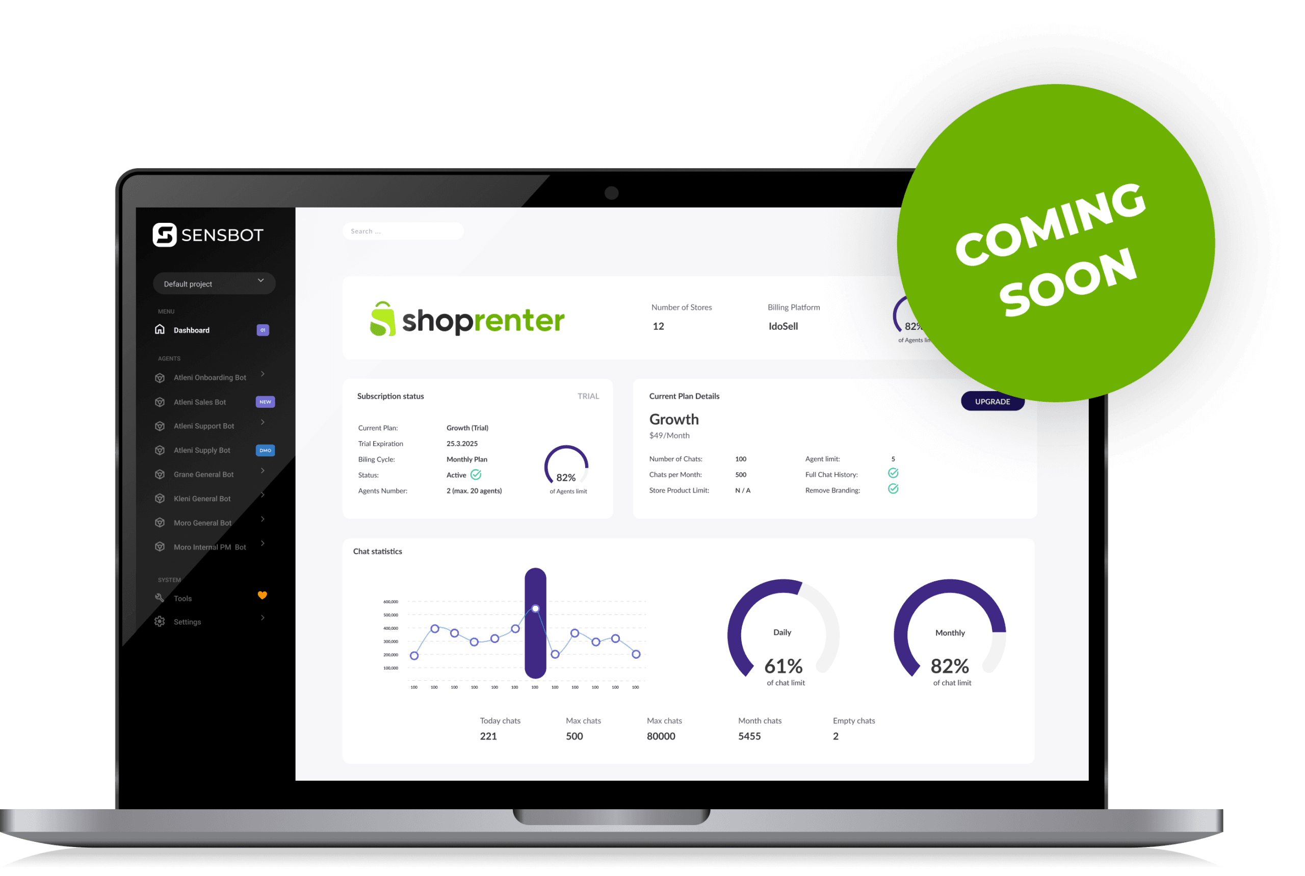Try Sensbot for free on your Shoprenter store – setup takes less than 2 minutes.